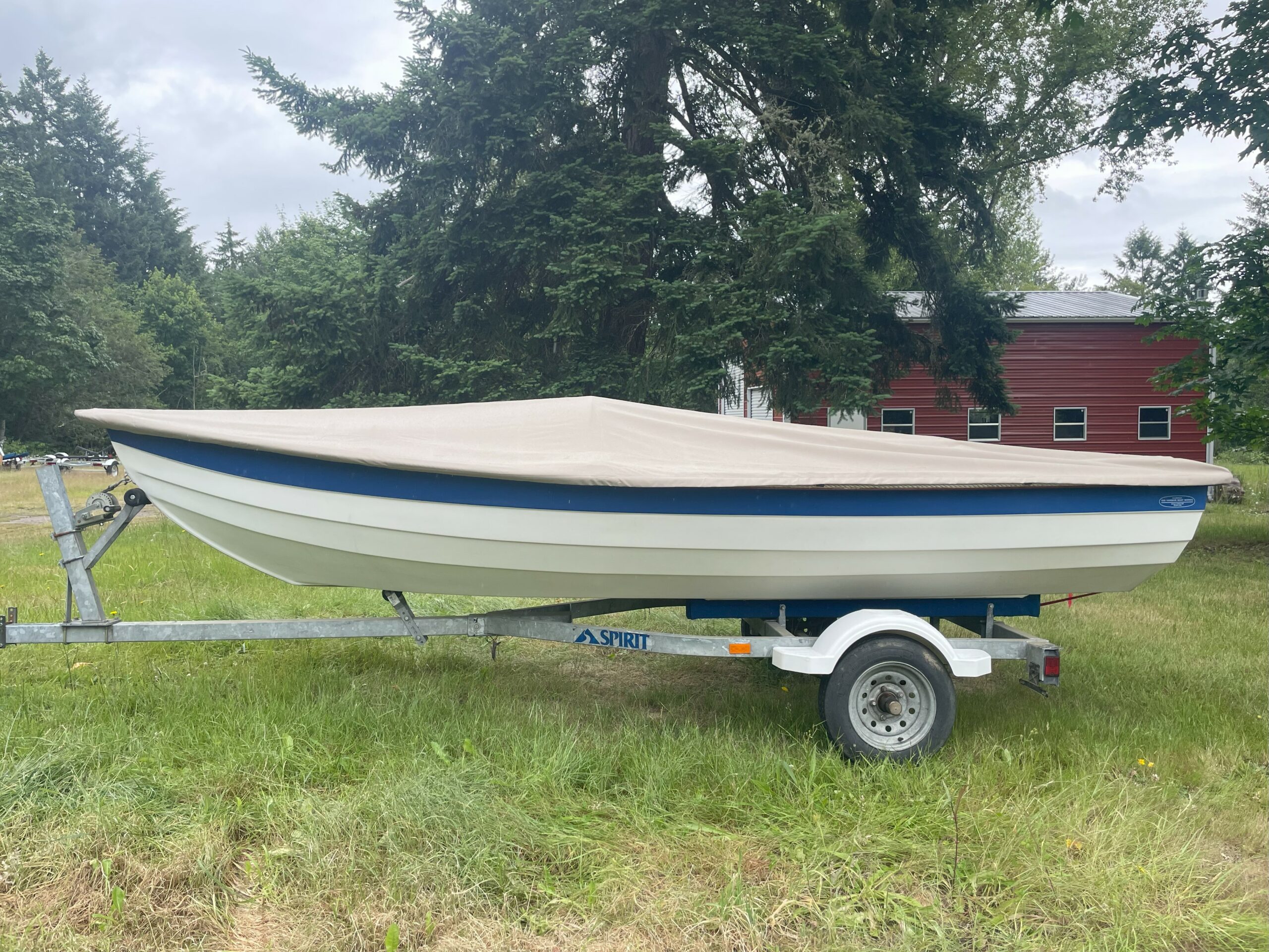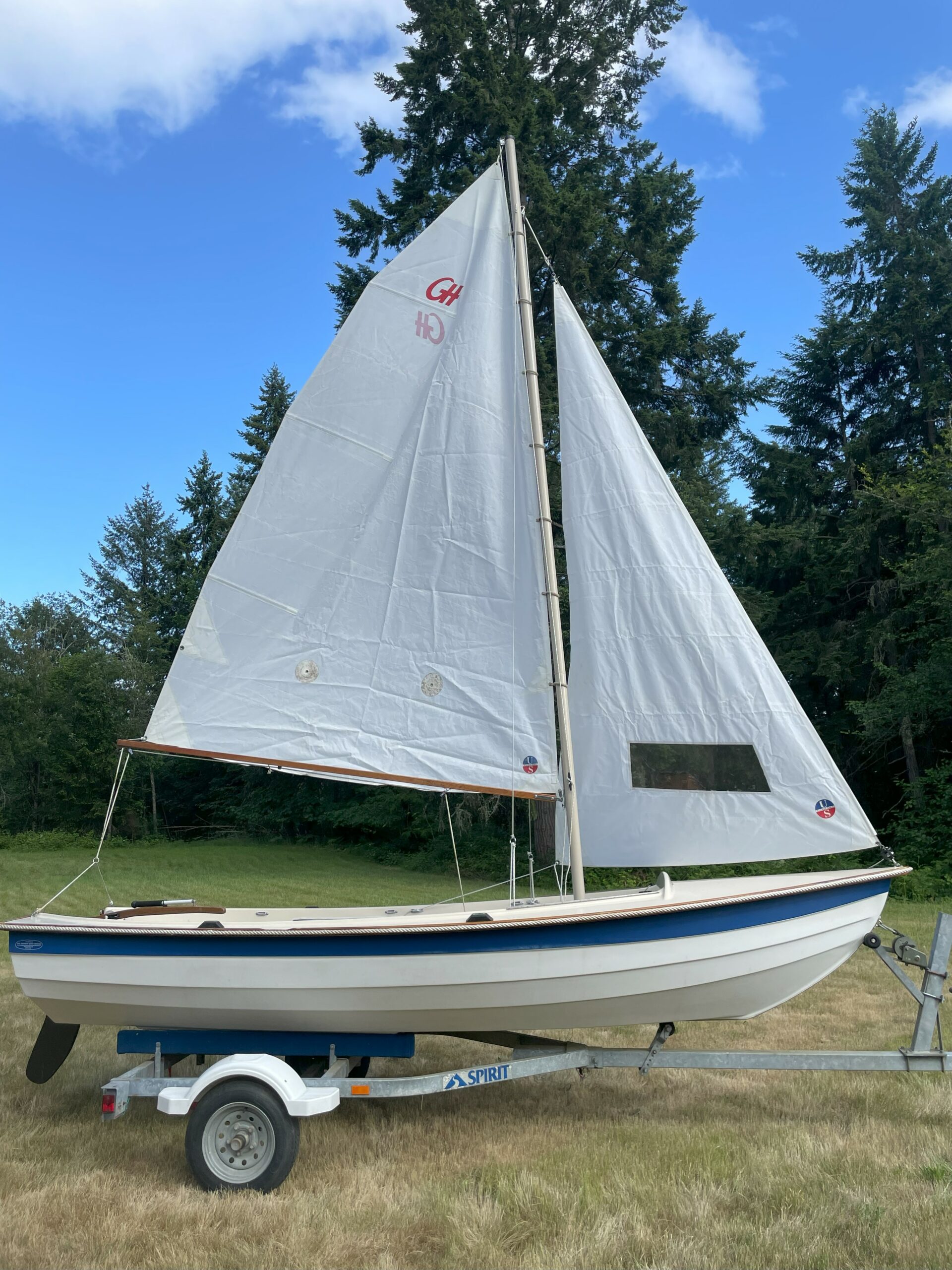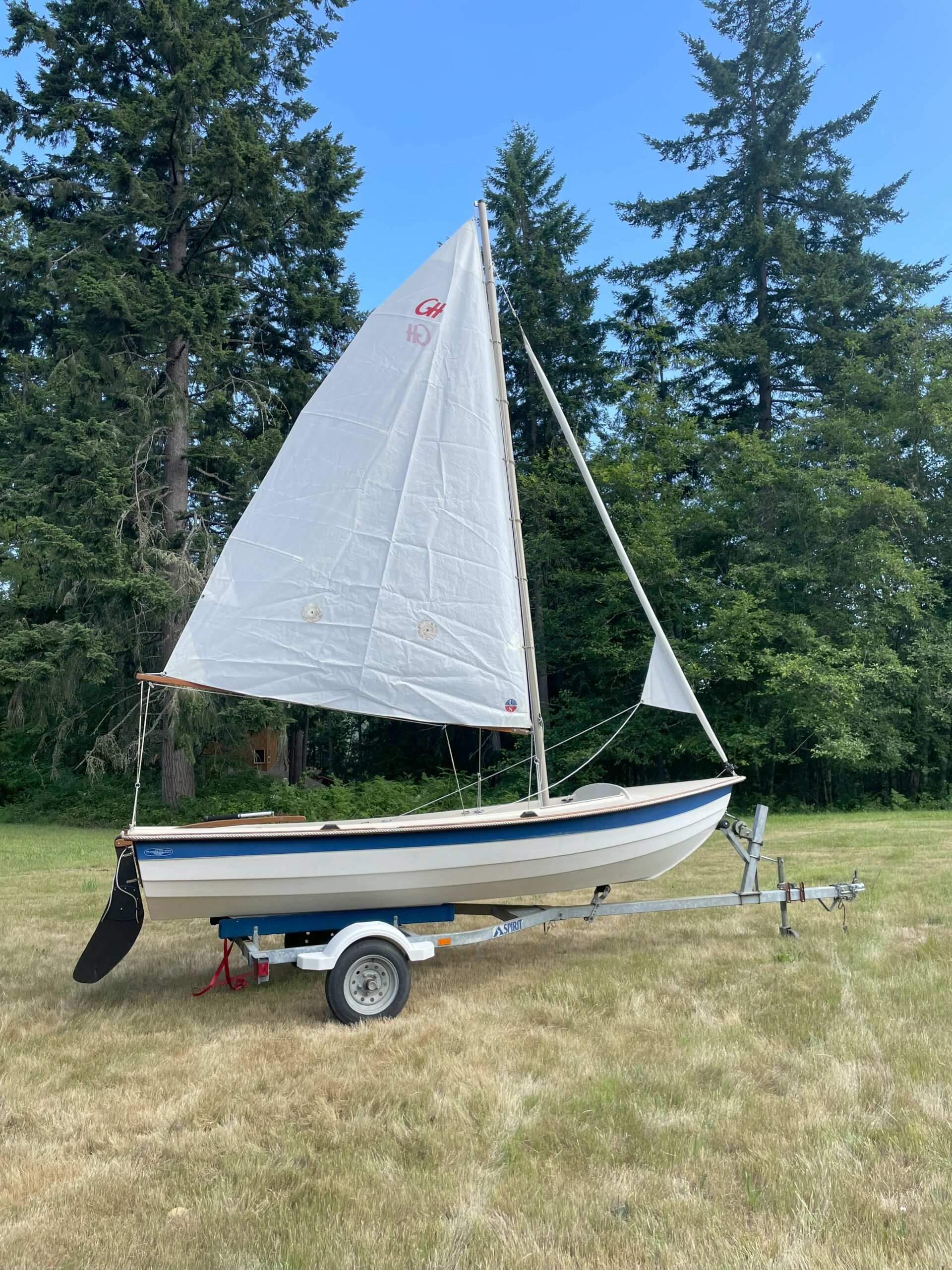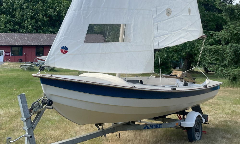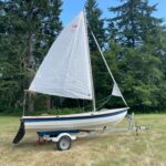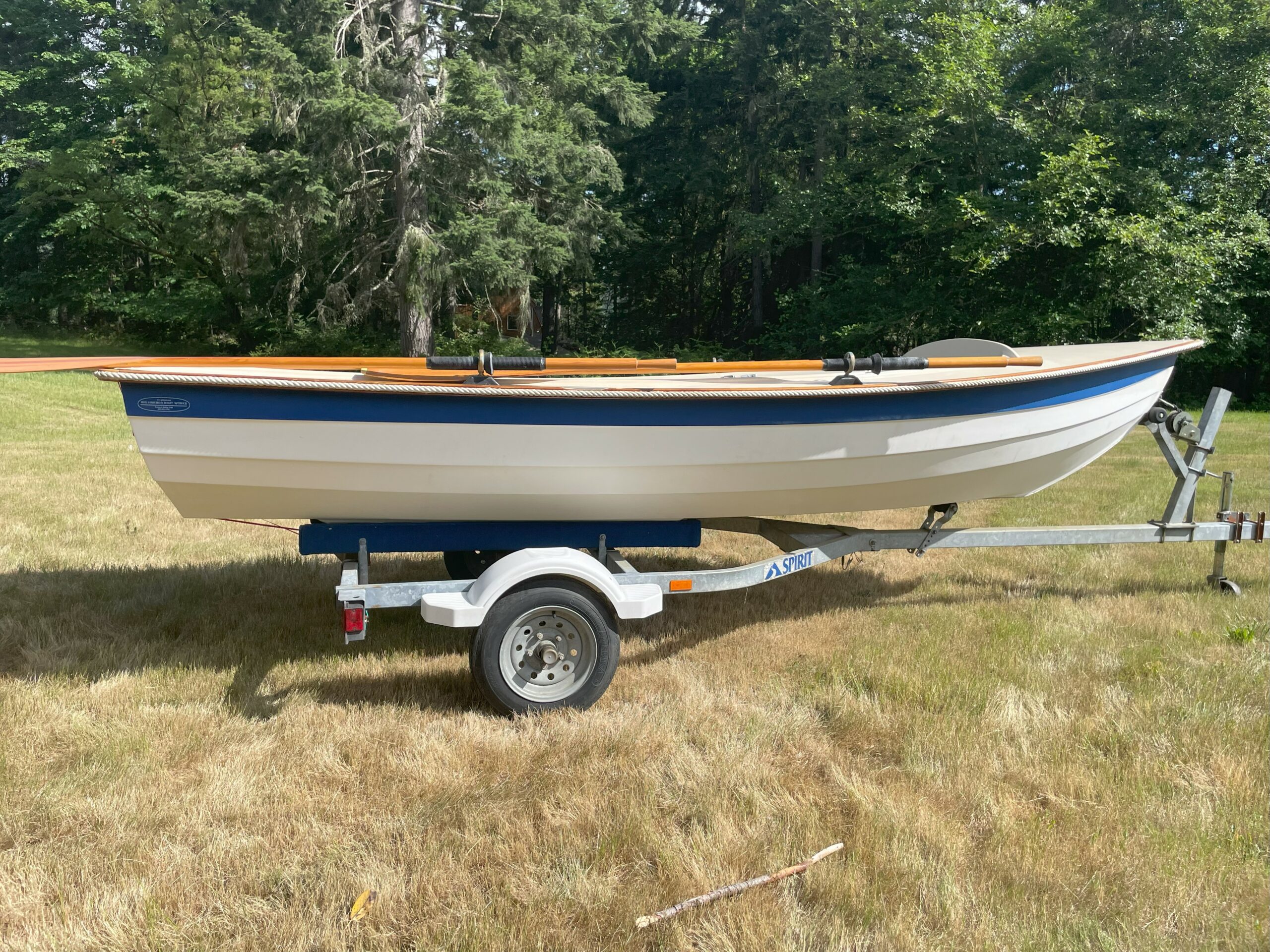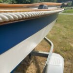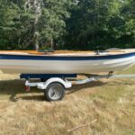We have a rare gem of a boat available right now – a beautiful 2002 15′ Maine Lobster Boat. Our Lobster Boat is an incredibly versatile boat that you can row, sail, and motor. Since it has a true planing hull, you can use up to a 10hp motor–a considerably more powerful outboard than you can use with our other boats (that are limited to 2hp).