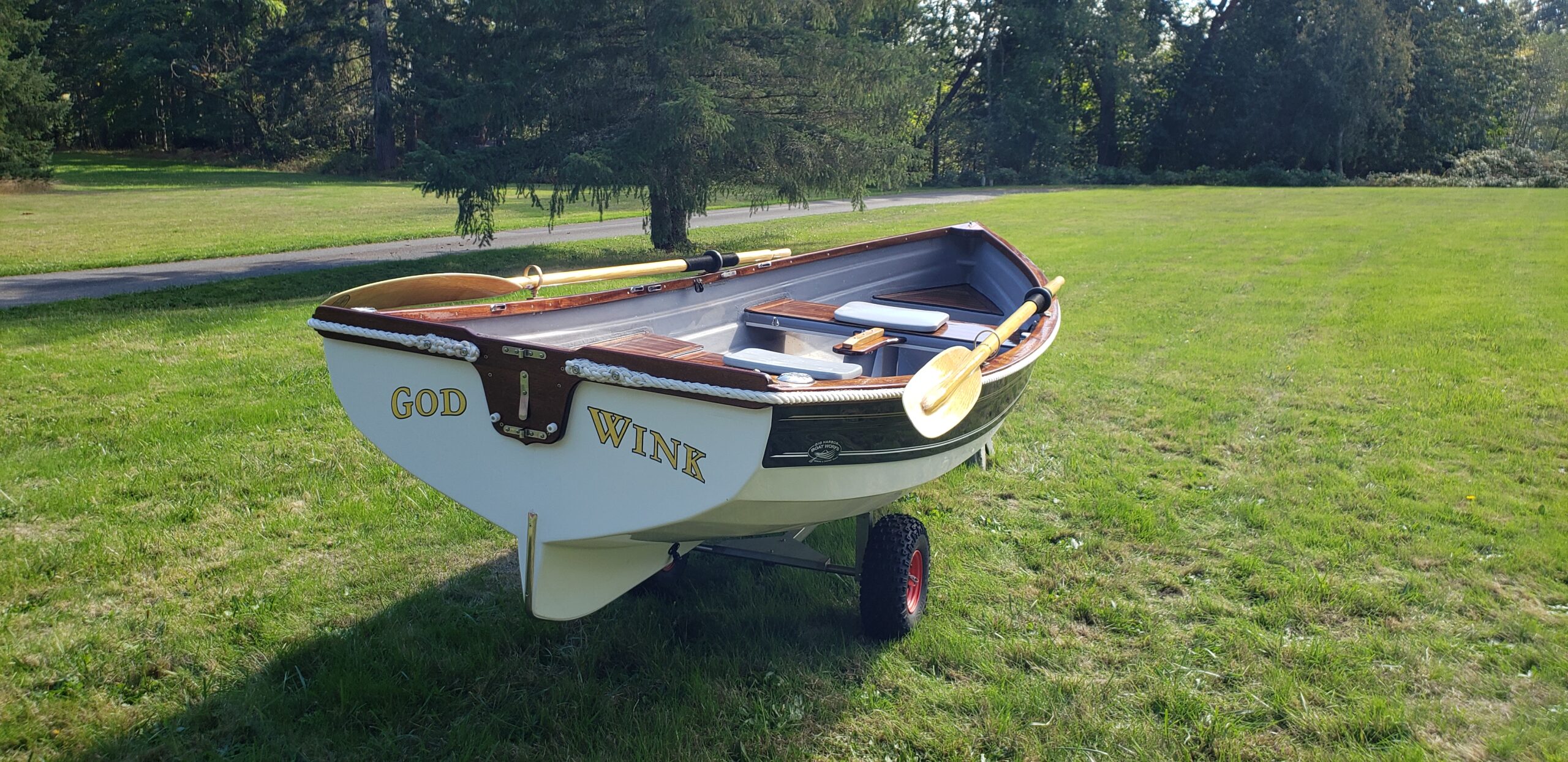 The 12′ Point Defiance is a versatile sailing and rowing boat, very forgiving and a true pleasure to row and sail. It works well as a ship-to-shore tender, but is also a fantastic knockabout daysailer in its own right. This particular boat was built as a luxurious tender for a larger yacht, but the owner was unfortunately unable to take delivery due to extenuating circumstances. It has never even hit the water, and the owner is now offering it on consignment for a limited time.