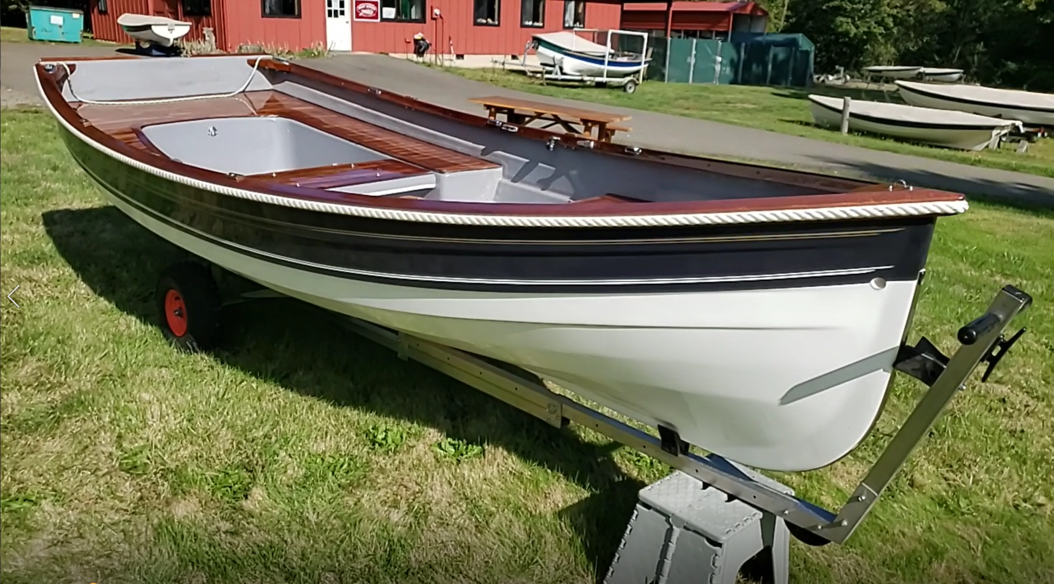 Offered as new at $16,400, it is sailaway ready with full sail rig, 2 pairs of spoon blade oars, kick up rudder, canvas cover, gear bag, 2 seat cushions, tiller extension, fenders, and pop-up stainless steel cleats. See gallery below, and since the photos do not do it justice, so we also posted a walkaround video at the bottom so you can really see it in all its glory.