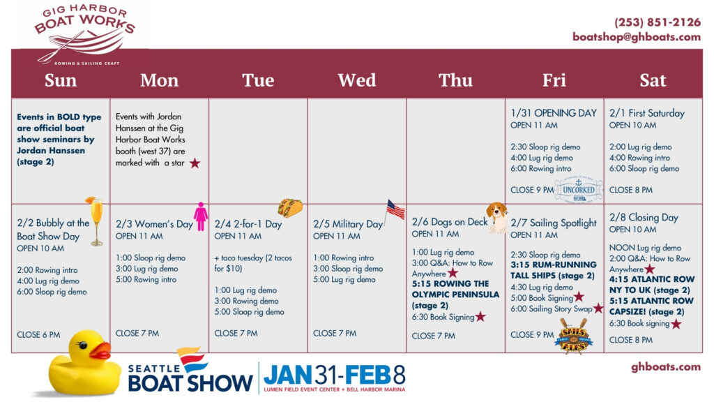 If you have one of our boats and want to get more involved in small craft culture–or don’t have a boat of your own yet but want to learn firsthand what makes rowing and sailing skiffs so much fun–here are some upcoming events to put on your calendar!