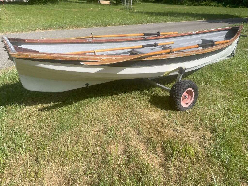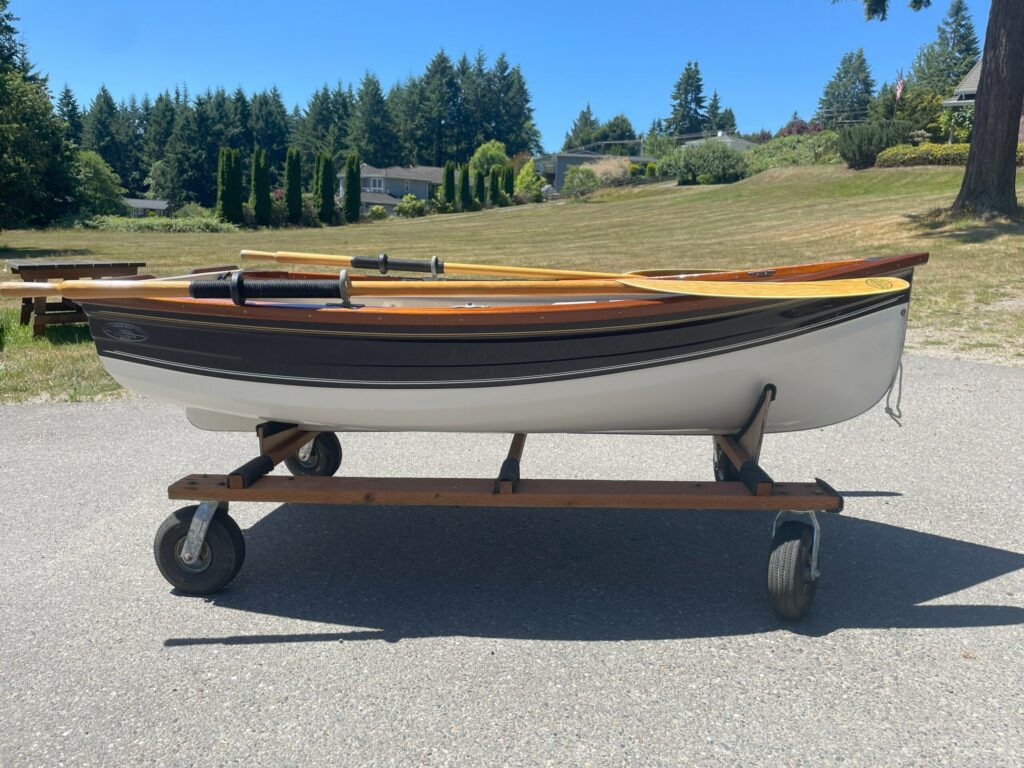 Available now is a stunning little 8′ Nisqually rowboat. This small boat packs a big punch of style and grace, with custom wood trim and seating detail.