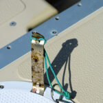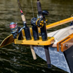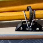 The original design for our fishing pole holder was created by our neighbor Kirby who has a Jersey Skiff. We modified it to fit the Salish Voyager. It keeps our fishing gear both accessible and out of the way.