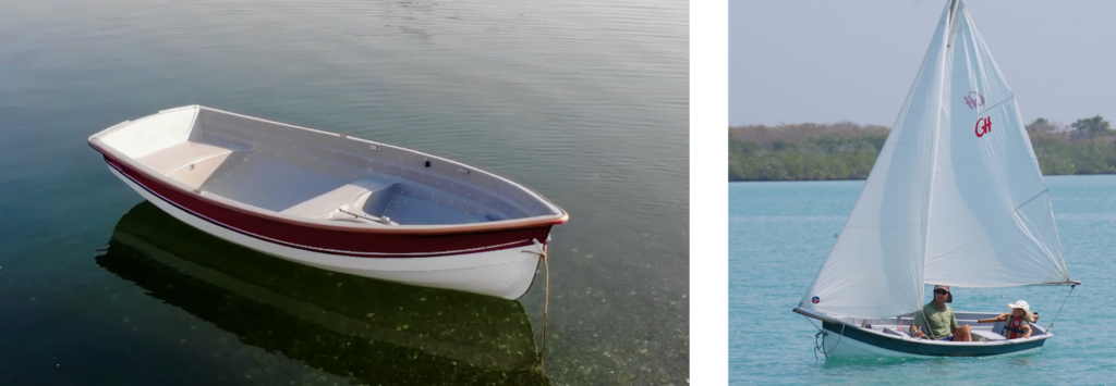 - Base boat: rowboat or sailboat