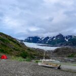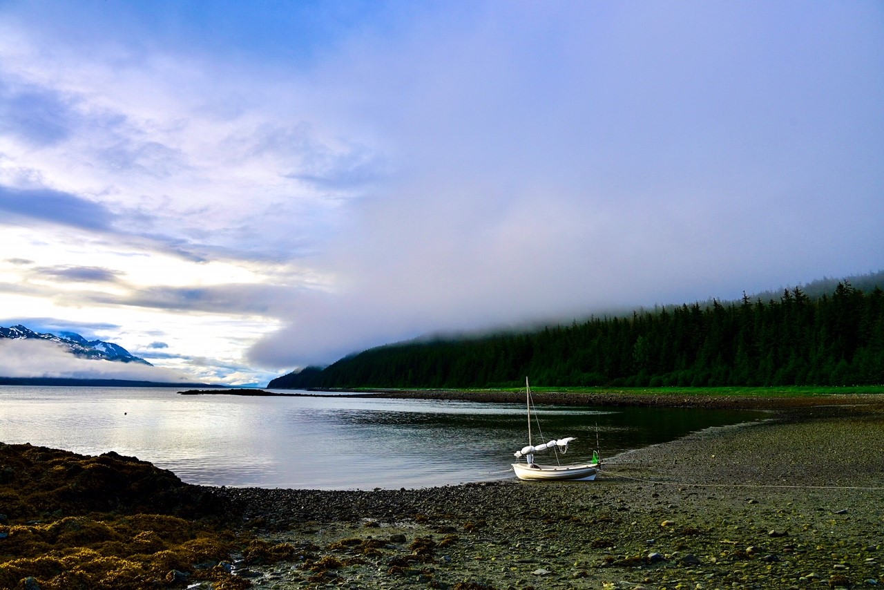 In Glacier Bay, we were blessed with exceptionally warm sunny weather and miles of enjoyable rowing on glassy calm seas, punctuated by occasional light winds for sailing. With a couple of cycles of spring and neap tides behind us, we are getting accustomed to resting the boat safely, either at anchor or on the shore, at night.